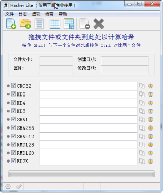 Hasher哈希校验工具 是一款实用程序,用于验证文件的完整性。支持范围广泛支持的算法: CRC32,MD2,MD4,MD5,SHA1,SHA256,SHA512,RipeMD128,RIPEMD160,ED2K。