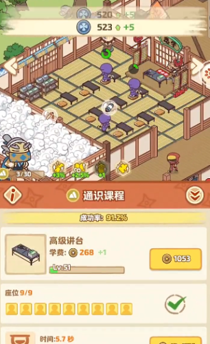 6.当面临任务无法完成,即声望不够解锁时,可以回去优先升级之前开放的课堂等级,提高自身的声望,满足条件后再来解决。升级过程中需要注意铜币的数量,单个课堂越到高等级,升级消耗的铜币会越多,但是升级后得到的声望并不会变,所以尽量每个课堂均衡升级,避免偏科!