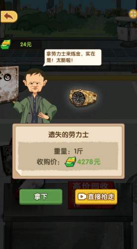 6、感兴趣的话可以选择拿下或直接抢走,不感兴趣则可以点击左上角返回挑选其他废品