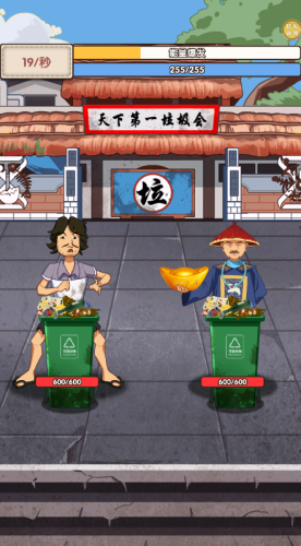 点击屏幕翻找垃圾桶,拾取废品赚金币,金币可以升级你捡垃圾的速度,帮助你成为捡垃圾之王。