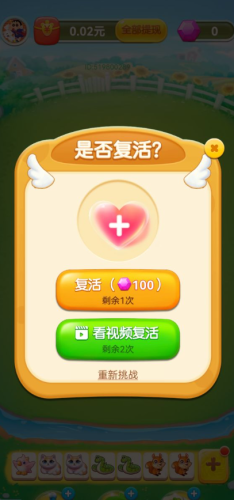 游戏拥有多个复活机会,比如使用100钻石或者看一下视频,选择其中一个即可接着闯关。