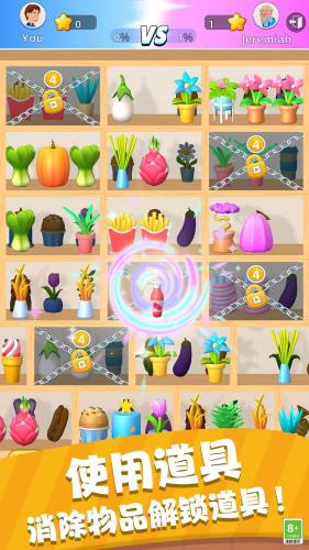 1、游戏的玩法非常的轻松解压,你可以利用道具去消除多种物品。