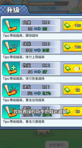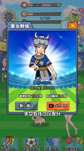 2、通过比赛和任务收集金币,升级装备,提升球队实力。