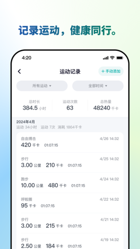 依托瑞金医院临床权威指导,提供专业运动管理方案,目前已收录 80 余种运动类型,帮助用户实现更灵活的运动记录。