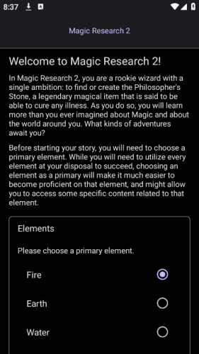 魔法研究2游戏英文名为《Magic Research 2》,魔法研究2游戏手机版是完美移植于端游的同名人气文字rpg魔法研究主题游戏手机版本,延续前作经典玩法基础上再度添加了大量全新的精彩内容元素玩法,不一样的寻找魔法石创造冒险文字世界之旅全新开启,相信一定不会让你失望的,赶快叫上小伙伴们下载魔法研究2游戏手机版体验吧!