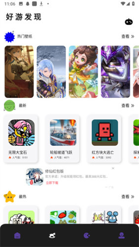 按照人气值将各种游戏推荐给大家,截图以及游戏LOGO展示了游戏是怎么玩的