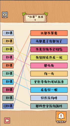 4、歌词连线模式:通过听歌曲前奏来连接出对应的歌词,全部连线成功即可通关。