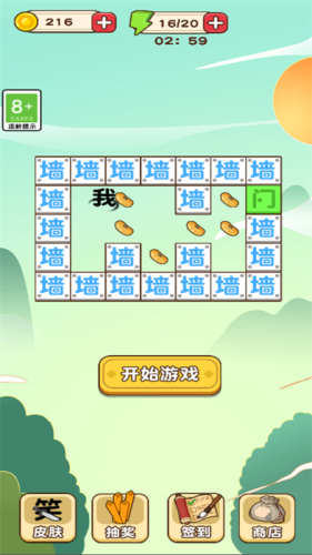 在这款游戏中可以体验一下文字的闯关过程,在游戏中玩家可以利用移动文字的位置去躲避障碍物进行闯关成功,在闯关的过程可以快速的把玩家代入到游戏中去,可以让你体验到文字的使用不同体验。