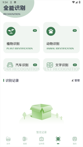 4、在识物中有动植物识别、汽车识别、文字识别等功能