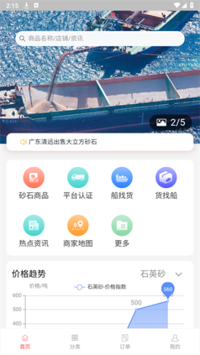软件中支持多种功能例如平台认证、船找货、货找船、商家地图、砂石商品方便了用户的使用