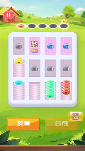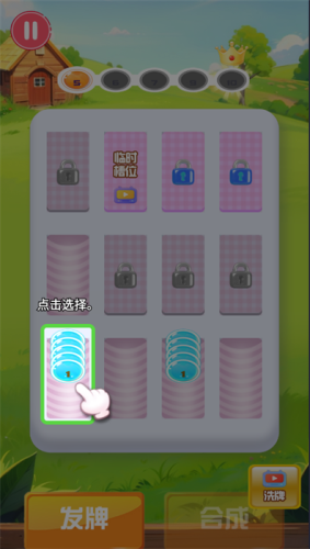 如果先选择的是直接开始游戏点击进入会有新手指引,比如:点击选择,同类型的放一起,点击合成就可以10个相同的牌,能合并为下一等级!点击发牌还可以获取更多的牌,然后继续合成。
