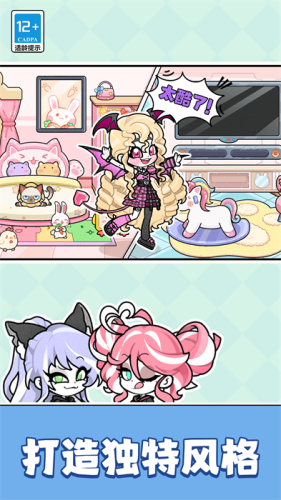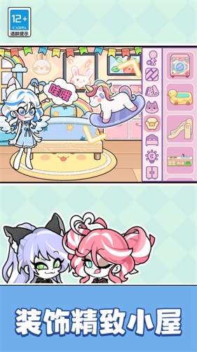 这款游戏里面运用了可以自由发挥想象力去设计角色以及房间,让玩家体验一下自由搭配过程;