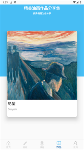 用户可以在作品展示区发布自己的作品或者观看别人的油画作品集,通过分享交流的方式提升自己的绘画技术