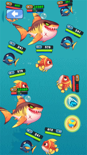 在这片海洋里面你要壮大自己把这里的鱼类全部合并掉,然后成功进化来进行下一关的闯关任务挑战。