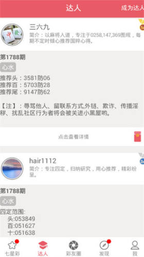 展示彩领域的名人榜单,分享他们的成功经验,根据大神分享的经验,找到合适的号码,进行合理预测。