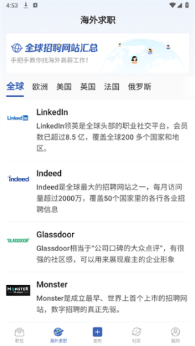 神仙外企app是一款外企招聘信息平台,该软件当中拥有大量优质企业的线上招聘,还拥有外企职场互助社区,用户可以在这里了解到别人的应聘经验和分享自己的应聘心得。