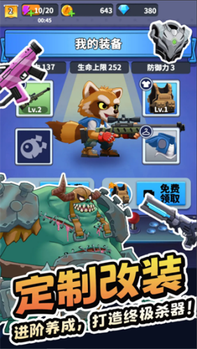 游戏融合了末日题材搭配上肉鸽的玩法,超多丧尸从天而降,游戏内的打击感非常强,休闲射击的玩法,非常护肝,各种炫酷武器登你来玩。