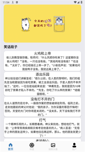 软件当中拥有海洋的搞笑段子和搞笑表情可供用户观看和使用,软件支持每天持续更新