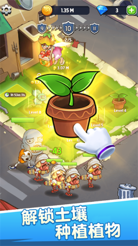 在游戏里还可以去解锁新的土地来扩大种植植物的地方,植物越多在攻击僵尸的时候越猛;