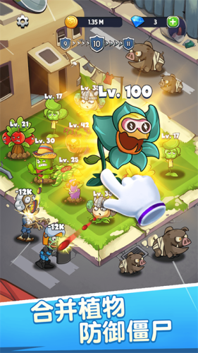 在闯关的过程中玩家需要通过屏幕上显示的去点击购买植物,再拖动或双击合并花,移动花朵去打败僵尸来获取奖励。