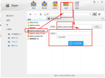 点击要压缩加密的文件==点击加密==输入密码==点击立即压缩