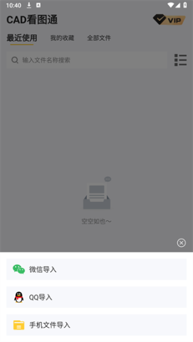CAD看图通app当中拥有多种不同的文件导入方式可供用户使用,分别是微信导入、QQ导入、手机文件导入等