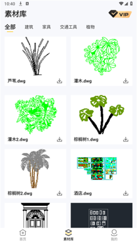 软件当中拥有大量的素材库可供用户使用,分别是建筑、家具、交通工具、植物等,可以帮助用户提高工作效率
