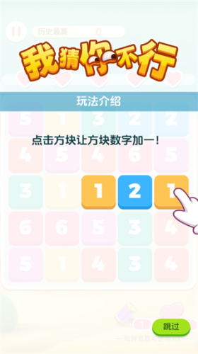 我猜你不行是一款趣味十足的休闲益智类小游戏,游戏的界面简约,规则看上去很简单,玩起来仿佛没有难度。但这款游戏非常烧脑,能掀你起头脑风暴智慧的考验。超多关卡和难度可以自由选择,挑战你的头脑智慧,点击相邻的相同数字,他们就会浮出来。再次点击即可两两相消除,他们会在你点击的地方合消除,虽然消除不难,但是想拿高分,却又难到让人抓狂。在色彩缤纷的方块中寻找相同的数字,让他们合并消除。这个游戏玩法令人上瘾根本停不下来,喜欢这款游戏的话快来下载安装体验吧。