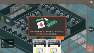 4、这些卡片代表每天可以进行的事项,你可以把卡片拖并放置到面板上来进行活动,整个面板代表着你每天的可工作时间。不同的工作会以不同的形式占用着你的时间;