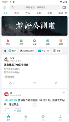 妙评app它是由茂名市奇谈网络科技有限公司专门开发的万物评分软件,该软件当中拥有大量事物的评分结果,例如软件、手机、游戏、人物等,除此之外还拥有大量网友的资讯分享可供用户观看。