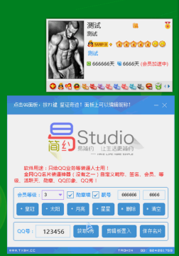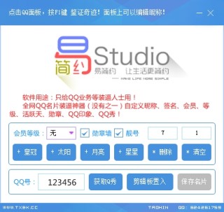 易简约QQ名片装逼神器是2015年最新的一款QQ装逼神器,这款软件可以由用户自定义QQ号码、会员等级、QQ等级、Q钻等级、活跃天数等,这些都可以用来装x,易简约QQ名片装逼神器,支持修改会员等级,靓字,活跃天数,赶紧来下载这款软件发到朋友圈里晒一晒吧。