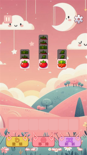 3、进入关卡选择一个水果的图案,然后找到其他两个水果,点击进入下面的卡槽中即可消除。