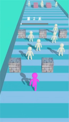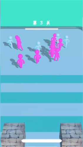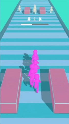 1、玩家要在游戏关卡中,不断的收集人群,来壮大自己的实力,最终轻松的冲刺到达终点。