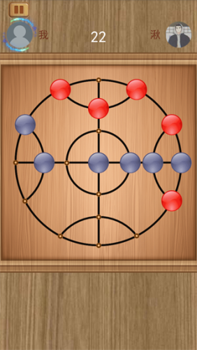 2、点击棋子可以移动到相邻位置,围住敌方若干棋子即可消灭这些棋子,游戏玩法十分简单双方交替在棋盘上点上移动各自的棋子;