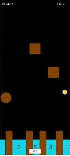 2、点击进入关卡里面通过点击屏幕上给出的放下按键去移动小球,利用撞击其他的物品来进行反弹掉落到相应对方数字里面获得胜利。