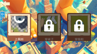 3、游戏中左边的按钮控制玩家的左脚上下左右移动,右边控制角色的右脚上下左右移动,在关卡模式中也有着三种玩法可以选择,上厕所,穿袜子,穿拖鞋;