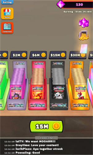 3、用赚来的利润投资你的商店,玩家可以自由选择自己的操作模式,无论是出售卡包还是打开自己的卡来收集卡。