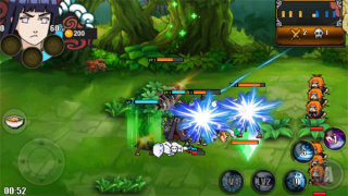 4、游戏操作简单,忍者角色都有各自的招式技能,玩家只需要点击普攻和技能,就能打出华丽的特效。