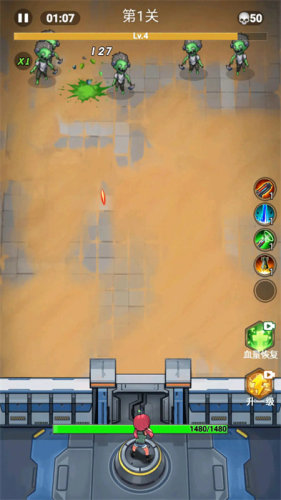 这款游戏里通过攻击僵尸的对战方式来设计闯关挑战的,让玩家可以去体验防御射击的闯关过程;