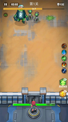 2、点击闯关按照屏幕上显示出来的攻击技能来选择:振荡激波:发射1次震荡波攻击区域敌人并分裂出余波;高能射线:发射1束高能射线,对路径上的怪物造成持续伤害;闪电枪:发射1道可在敌人间传递的闪电等等来攻击僵尸。