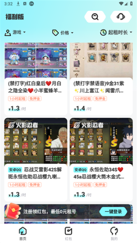 租号玩福利版当中拥有海量的游戏账号可供用户进行租借,并且还拥有大量的红包福利可供用户进行领取。