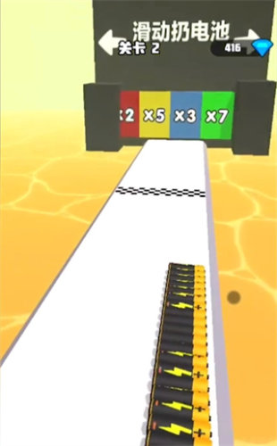 电池向前冲是一款趣味十足的休闲益智类闯关小游戏。在这里玩家需要通过左右滑动屏幕来控制电池的走向,同时也要躲避关卡内的的陷阱和障碍物,路面上有着许多的电池,拾取地面的电池可以变得更大,完成后可以通过电池的数量获得相对应的钻石奖励,一鼓作气冲过关卡终点,获得游戏的胜利吧。电池向前冲游戏游戏内有着不同的道具可以增加你的电池电量,同时还有各种强大的电池皮肤供你选择使用。喜欢跑酷的玩家快来下载安装体验。