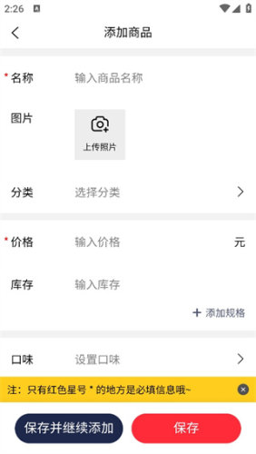 2、在这里标注星号的名称和价格是必须要填写的信息。
