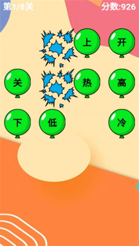 2、找到两个汉字相反意思的气球只需要点击击破气球即可消除。