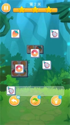 在游戏中当需要在上方的宫格中找到三个相同的水果图案即可消除,但是需要注意的是下方的卡槽只能容纳七个水果。还有道具能够让游戏更加精彩,帮助你轻松闯关。