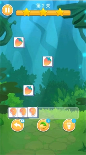 3、游戏玩法的玩法很简单,将3个相同的水果放在卡槽中即可消除它们。