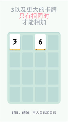 2、3以及跟更大的数字的卡牌只有相同时,才可以相加。