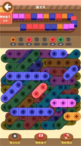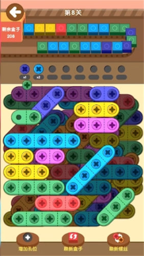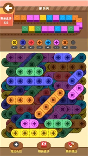 3、可以领取奖励进入下一关,而下一关螺丝种类和数量会增多。相应的难度也会增大。