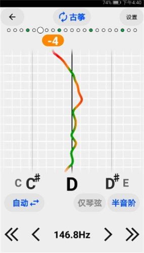 调音器中加入了可视化的曲线图,通过观察曲线来判断下一步调音的方向,判断调子是高了或者低了。这种视觉化的辅助工具能够帮助用户更直观地理解音高的变化