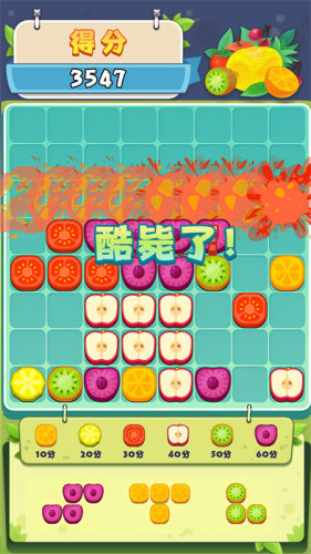 3、在闯关的过程中玩家还可以使用稀有的特殊砖块来消除水果,高额连续得分奖励连续消除多行水果,以此获得。